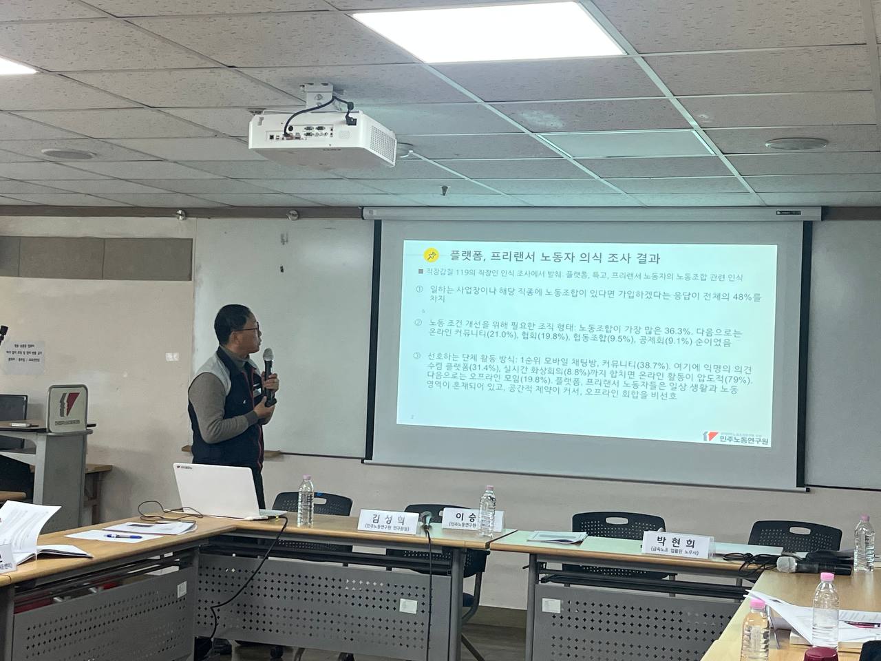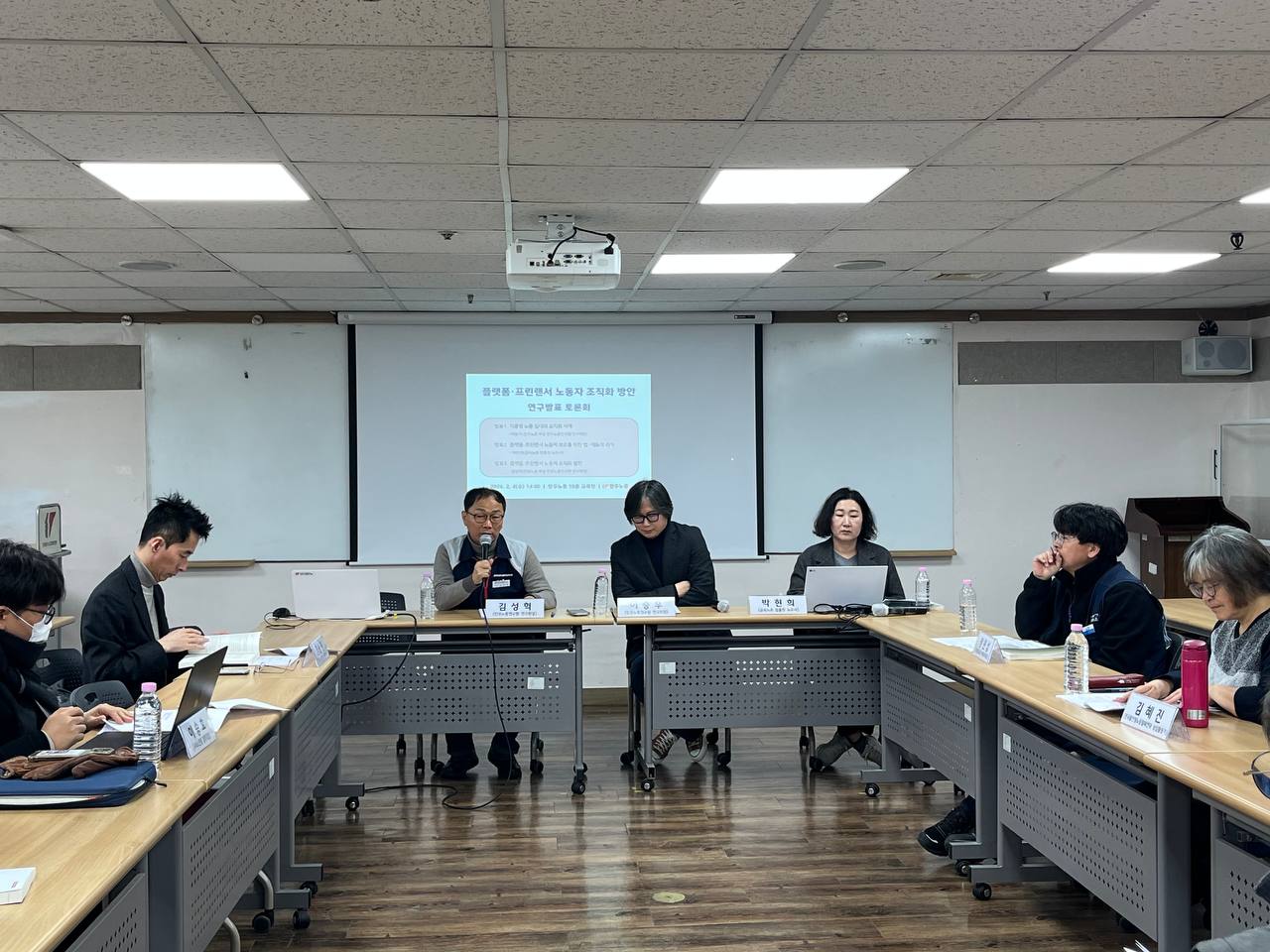 2월 4일 플랫폼·프리랜서 조직화 방안 토론회가 개최되었는데, 김성혁·이승우(연구위원), 박현희(금속노조 노무사)가 발제하였고, 정원섭(공공운수노조), 이승호(서비스연맹), 김혜진(불안정노동철폐연대), 김종진(일하는시민연구소 소장)이 토론자로 참가하였다.