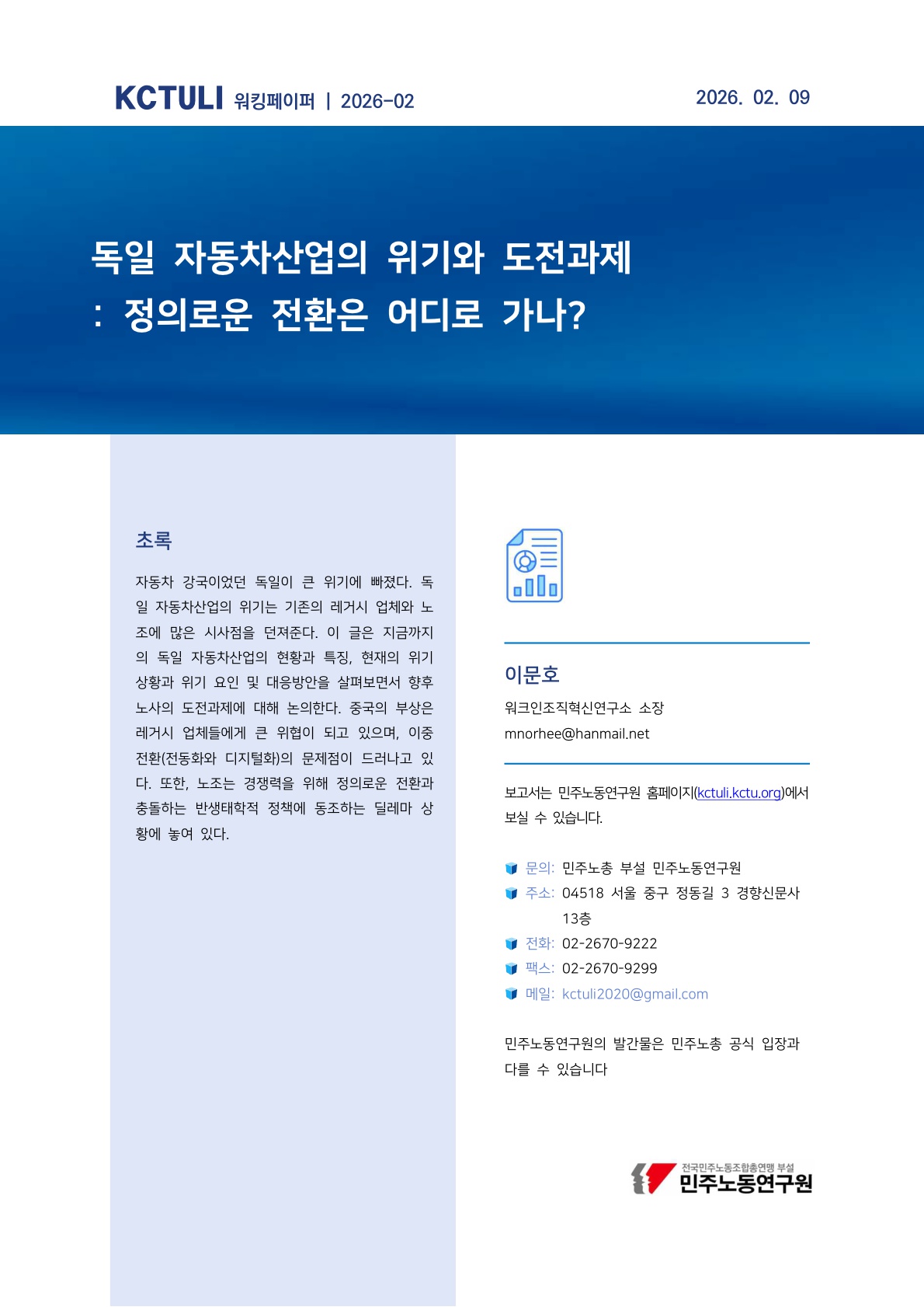 [워킹페이퍼 2026-02]독일 자동차산업의 위기와 도전과제: 정의로운 전환은 어디로 가나?