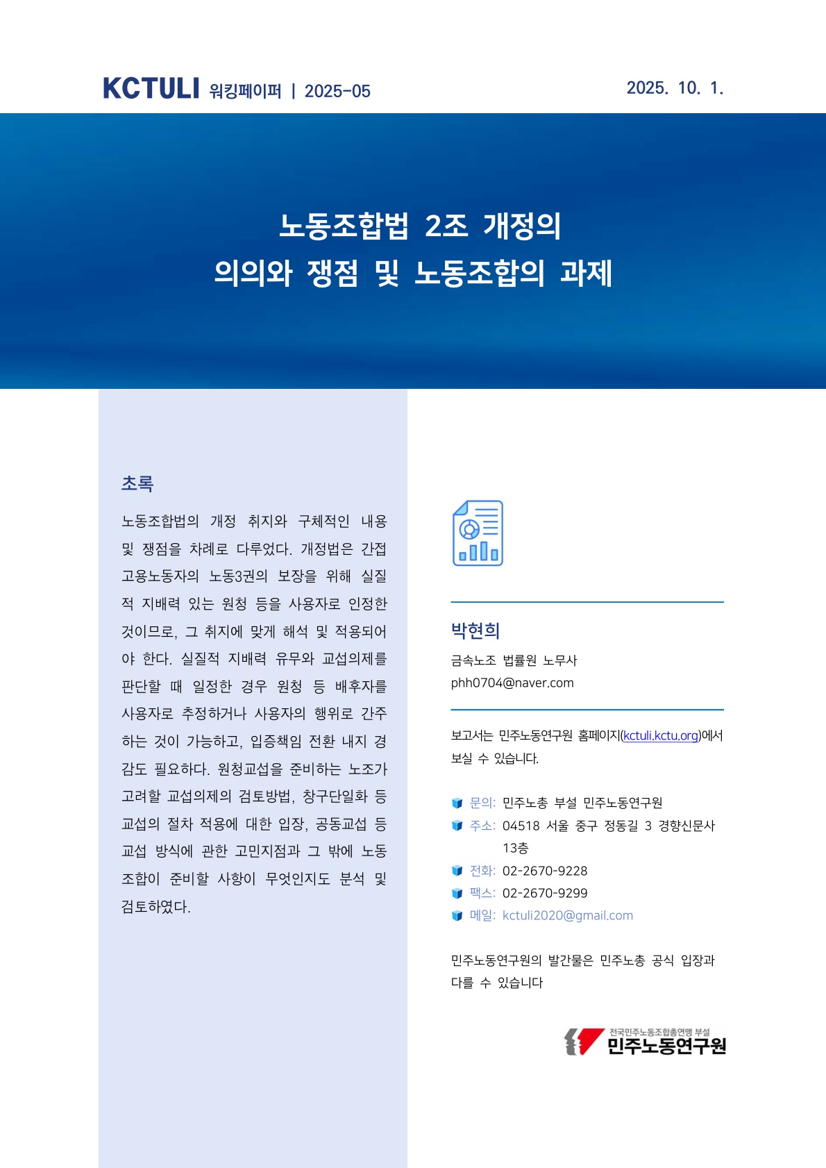 [워킹페이퍼 2025-05]노동조합법 2조 개정의 의의와 쟁점 및 노동조합의 과제
